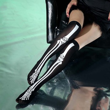 Bas d'Halloween Polyester Chaussettes Au-Dessus Du Genou Imprimé Couleur Crâne Style Festival Habiller Personnalité Long Tube Chaussettes