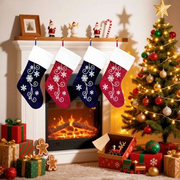 महिलाओं के क्रिसमस मोजे स्नोफ्लेक और सेंटा सजावट के साथ लंबे समय तक कैंडी उपहार बैग के साथ