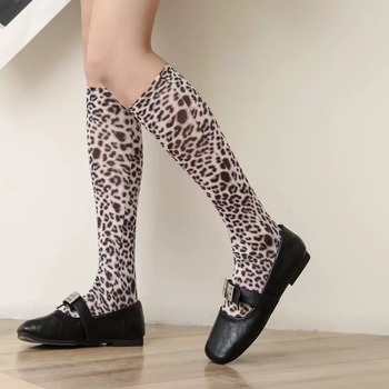 Calze da donna sottili con stampa animalier in seta Sexy estiva al ginocchio e Design traspirante