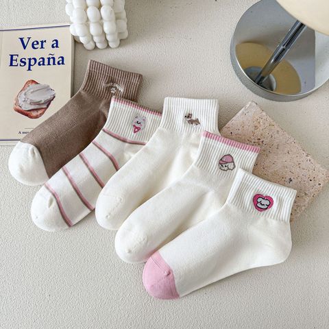 Dames Puur Katoenen Zomer Korte Sokken Schattige Ins Japanse Stijl Mid-Tube Crew Wit Gebreide Sport Mesh Sokken Geborduurde Cartoon